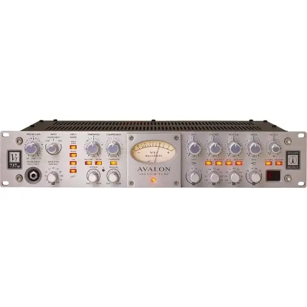 The Avalon VT-737SP is a channel strip featuring a combination of tube pre-amplifiers, opto compressor, sweep equalizer, output level and VU metering in a 2U space.