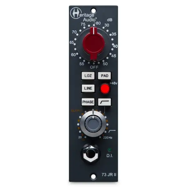 The Heritage Audio 73JR II is an update to the already classic 73JR β a true 73 style mic preamp in a single 500 series slot, with some added features that will satisfy the most demanding of recording engineers. Employing discrete circuitry and conventional components, the 73JR II is a faithful 3-stage all Class A 73 preamp. Styroflex and tantalum capacitors have been used throughout. No corners were cut.