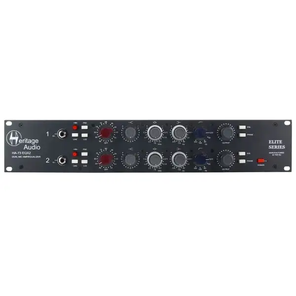 The Heritage Audio HA73EQX2 Elite is a two-channel mic preamp/EQ made to the same specifications as the acclaimed 73JR and DMA73 Heritage Audio models. Leveraging time-consuming hand-soldered series, Heritage Audio is able to offer a zero compromise, high-quality, yet very affordable alternative to the growing entry-level brands.