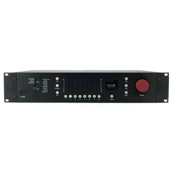 The RMP-D8 offers mastering grade 24-bit/192 kHz converters with precision control internal clocking and enhanced jitter reduction. Custom designed Rupert Neve Designs output transformers are equipped on each channel and can be fully integrated through Dante connections. Each of the 8 channels offers up to 60 dB of gain with the option to engage phantom power, phase reverse and a high-pass filter.